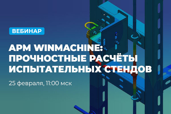 Приглашаем вас принять участие в вебинаре «APM WinMachine: прочностные расчёты испытательных стендов», который состоится 25 февраля в 11:00 (МСК).